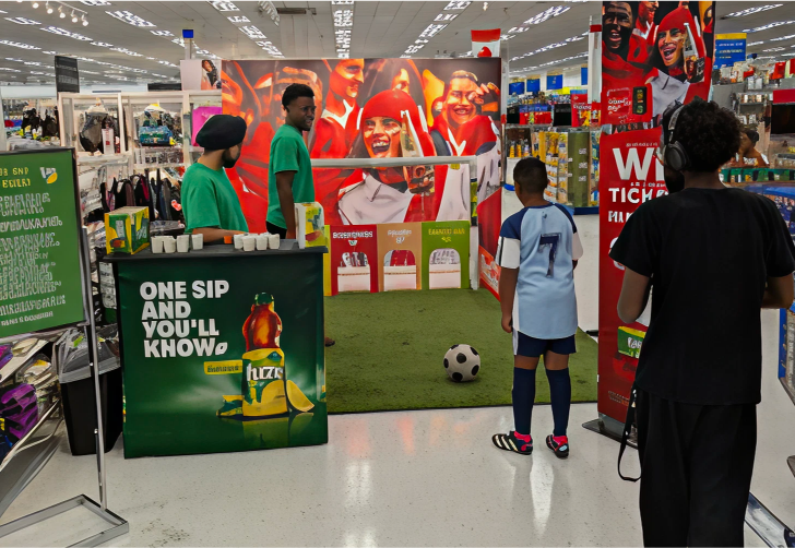 Nous avons créé une expérience de détail-divertissement unique en son genre qui a insufflé l’énergie du football dans les magasins Walmart, permettant aux clients de goûter Fuze, d’échanger des coupons et de participer à des activités sous la marque FIFA. Le produit a été immédiatement mis à disposition lors de l’activation, permettant ainsi un essai fluide et un accès instantané à l’achat. L’expérience intégrait des visuels inspirés de la FIFA, des concours et des éléments éducatifs afin de sensibiliser le public, de renforcer l’identité de la marque et de créer un lien avec le public cible, en encourageant l’interaction, l’engagement et le bouche-à-oreille.