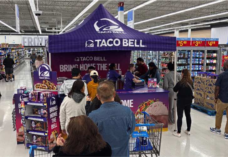 Community a créé une expérience de « détail-divertissement » combinant échantillonnage, éducation et points de contact interactifs. Des chefs locaux ont recréé en direct dans le magasin les préparations Taco Bell à emporter, tandis que des serviettes, des ustensiles de service, des présentoirs et une signalétique à 360° aux couleurs de la marque ont donné vie à l’espace. Les acheteurs pouvaient déguster des tacos au bœuf, au poulet et aux légumes, et des coupons numériques distribués sur place les incitaient à renouveler leurs achats, reliant ainsi l’expérience en magasin au plaisir à la maison.